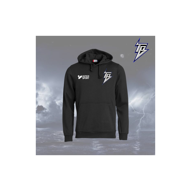 Hoodie noir 100% coton aux couleurs du tonnerre de Brest